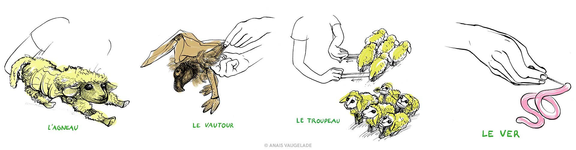 Construction marionnettes : Romain Duverne, Manon Toreilles, Christophe Barret