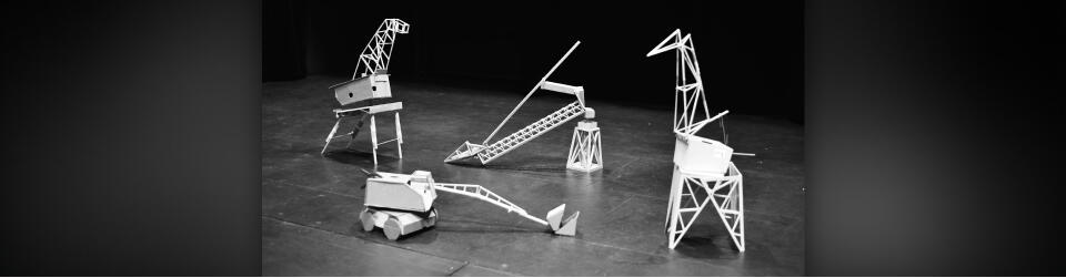Chantier Parades est en projet marionnettique ; un chantier de construction suprématiste et baroque, où les outils de l'atelier et les engins du chantier sont en grève contre leur fonction habituelle.Avec ce projet nous aimerions questionner la notion d'utilitaire. Il est né du désir d’imaginer à l’intérieur de nous un immense paysage urbain, de se sentir comme un bâtiment éternellement en construction ; comme une manufacture abandonnée ou une station électrique cherchant à produire du courant. Ou encore, s’imaginer rétrécir jusqu’à la taille d’un clou, qui attend le coup de son marteau.Ce chantier imaginaire est construit comme une performance plastique et gestuelle, où les grues portent des paroles, est non des poids lourds ; où les pinceaux et les réglets dansent sur des rythmes obstinés, et les tractopelles chantent des opéras.