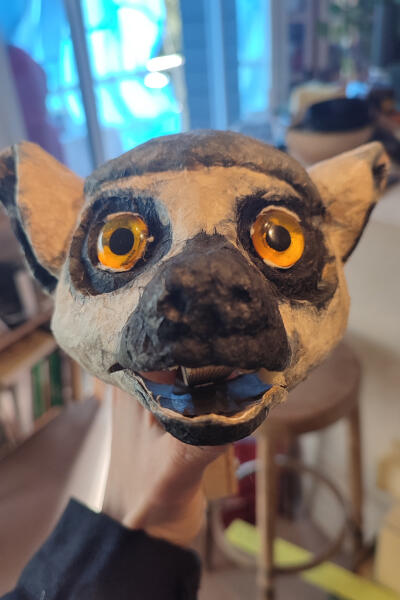 Symbole de l’ancien monde, elle devient la résidence principale du lémurien.Portée et manipulée en corps-à-corps, la marionnette de lémurien négocie une prise de parole avec son humaine de compagnie.Accompagnés d’un musicien, ce quatuor de présences viendra frictionner la frontière poreuse entre humains et non-humains.