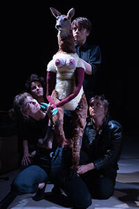 Anaïs VaugeladeLapin Cachalot est une commande d’écriture de fables contemporaines passée à trois auteurs-rices entre 2018 et 2020. La compagnie Arnica entre de plain-pied dans un bestiaire étrange, où les animaux prennent la parole pour convoquer le pouvoir, l’amitié, la justice et le politique.
