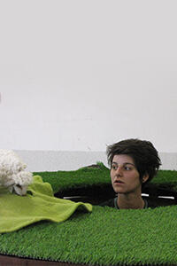 Symbole de l’ancien monde, elle devient la résidence principale du lémurien.Portée et manipulée en corps-à-corps, la marionnette de lémurien négocie une prise de parole avec son humaine de compagnie.Accompagnés d’un musicien, ce quatuor de présences viendra frictionner la frontière poreuse entre humains et non-humains.
