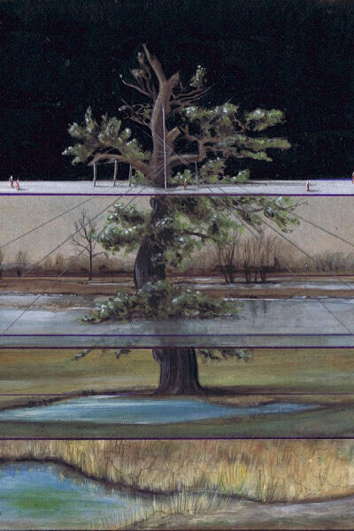 Et si cette vallée théâtralisée nous faisait entrer dans un autre paysage, celui d’un monde qui est en train d’apparaître ?Avec cette pièce, nous cherchons une immersion théâtrale dans la vie d’une vallée imaginaire. Le paysage devient le personnage principal où l’on observe les êtres vivants et cela engendre une recherche particulière sur la scénographie marionnettique, sorte de super-marionnette permettant de faire apparaître et disparaître les marionnettes représentant les différents êtres vivants.En s’inspirant des peintures de Gidéon Kiefer et des systèmes de machinerie issu du théâtre à l’italienne, il s’agira avec Stéphanie Mathieu, scénographe, d’inventer un castelet-écosystème à l’échelle d’un plateau de théâtre, permettant de varier les points de vue et les échelles. On pourra par exemple faire apparaître ce qui existe sous la terre ou sous l’eau, donner le point de vue d’un oiseau ou d’un castor, regarder les différents habitats, maison ou terrier, dans un rapport d’échelle équivalent.Cette vallée imaginaire sera faite de matières bois, cartons, et toiles peintes, dans la tradition d’un théâtre artisanal, créant des espaces à transformer pour mieux changer de points de vue et usant d’éléments cartographiques pour passer d’une chose à l’autre. La scénographie propose un rapport organique au territoire, où les corps semblent faire partie du territoire qu’ils habitent, constitué par eux en quelque sorte, comme une façon de rendre visible l’enchevêtrement des vivants entre eux, et comme une façon de remettre l’homme à sa place d’animal humain.Emilie Flacher (note d'intention 2021)